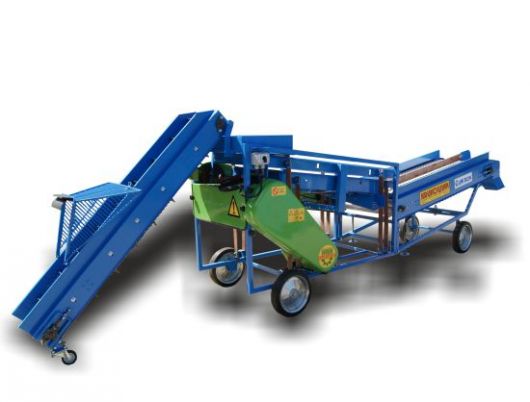 De sorteermachine sorteert de aardappelen in 3 sorteringen. Machine is electrisch aangedreven. Sorteertafel biedt een extra kwaliteitscontrole op beschadigde en zieke aardappelen.